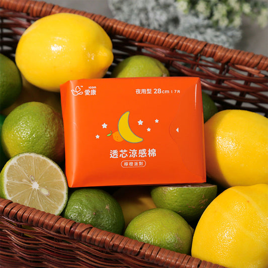 ICON Cooling Sanitary Napkin - Lemon Orange Party - Fruit Scented Night Use 28cm